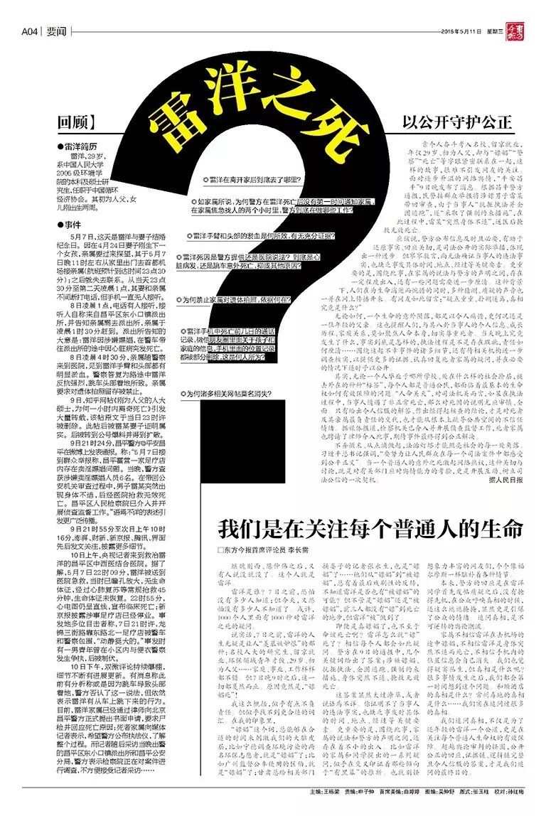 ◎雷洋死因是警方提供还是医院说法?到底是心脏病发,还是跳车意外死亡,抑或其他原因?