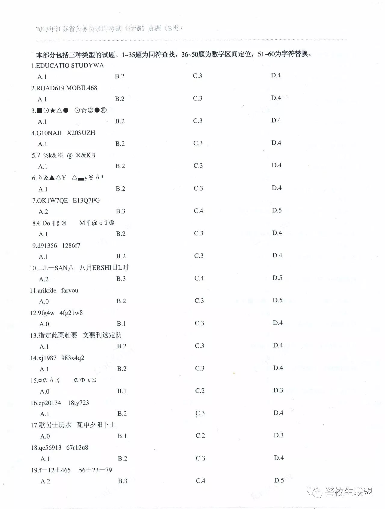 小编发现知觉速度与准确性部分曾经在江苏省考中考过,2007年—2013年江苏省考《行政职业能力测验》B卷中就有知觉速度与准确性部分,10分钟完成60道题。大家可以找到这部分题来练习。