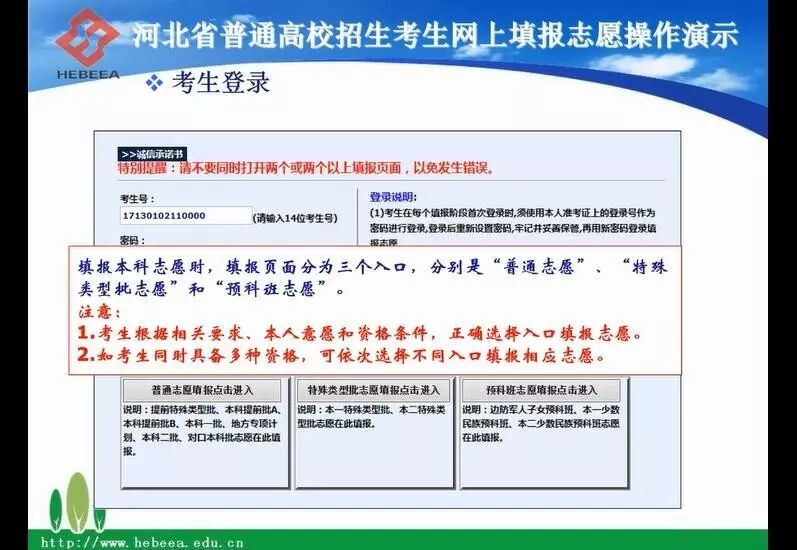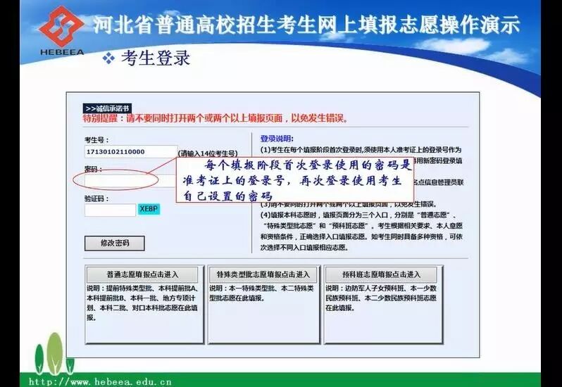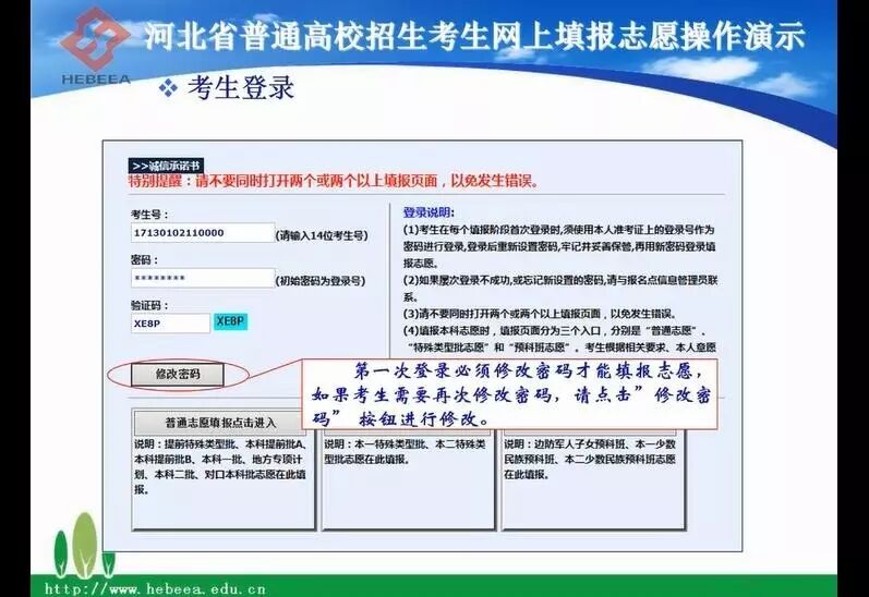 据了解,考生在每个填报阶段首次登录时,均须进行诚信承诺,并使用本人准考证上的登录号作为密码进行登录,及时修改密码并牢记。如果忘记修改后的密码,需携带准考证、身份证等有效证件到报名所在地招生办办理密码重置。