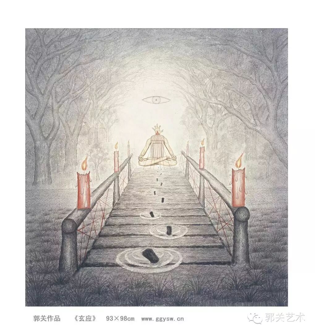 郭关简介:出生于湖南,画家,古琴家,龙虎山道士。作品涉及绘画、音乐、书法、诗文、斫琴、装置、行为等领域;知周易、晓音律、好古琴、喜操《幽兰》《广陵散》;曾闭关参禅一年,出关后系统研习中观、唯识学,画风大变;后于龙虎山修道,通斋醮科仪;其曾就学于北京师大、人民大学,宗教哲学硕士。作品多次参加全国美展、被国内外艺术机构及收藏家收藏。现“郭关绘画全球巡回展”已在台湾、佛光山、英国、墨西哥等地圆满举行。台湾建立有“郭关美术馆”,长年展示郭关作品数百件。