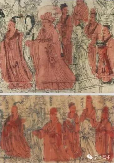 图13 扶桑与邻近男仙比较图,上《八十七》,下《朝元》 |