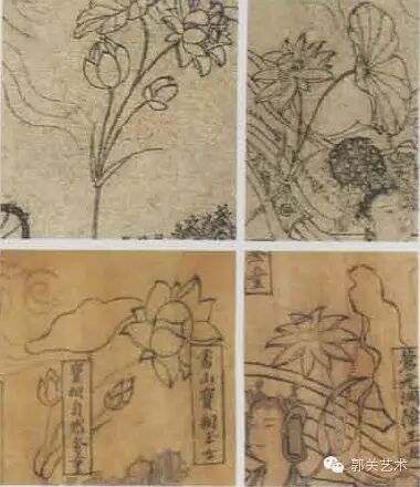 图7 荷花比较图,上《八十七》,下《朝元》 |