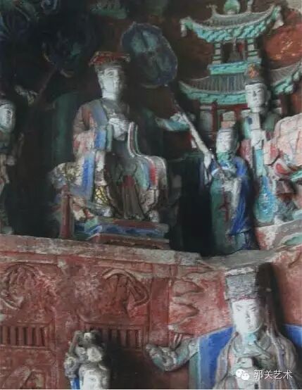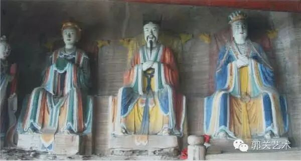 再看相似的一例,文宣王孔子像。大足石篆山文宣王与十哲弟子龛作于北宋元礻右三年(1088),。56年后,、左壁为老君、右壁为文宣王),这时的文宣王头戴冕旒,与玉皇大帝相似(见图19右)。这种变化其实不是乡间工匠偶然所为,: