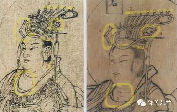 图10 头部连线比较图,上《八十七》,下《朝元》 |