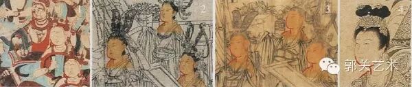 1.头部,156窟乐女头部外轮廓较圆,这是唐代一般女像的特征,而2、3、4图的头部则为竖椭圆形,这是一般宋代女像的特征;