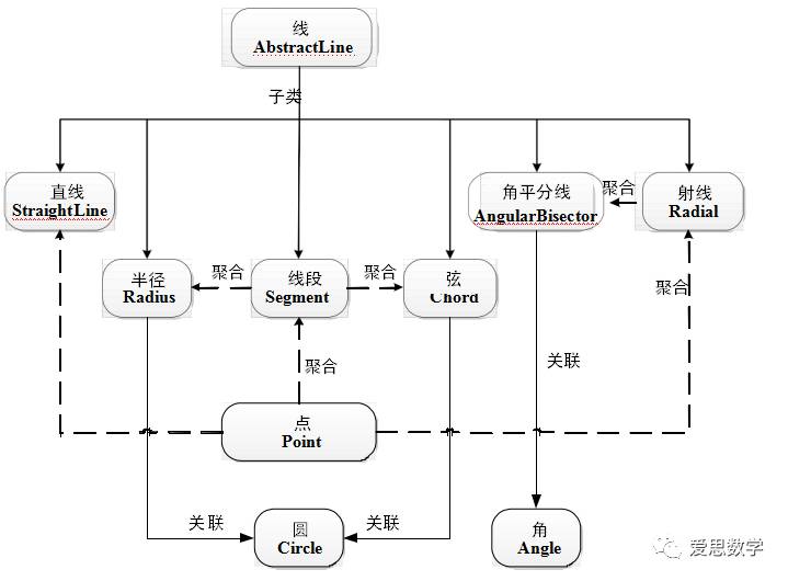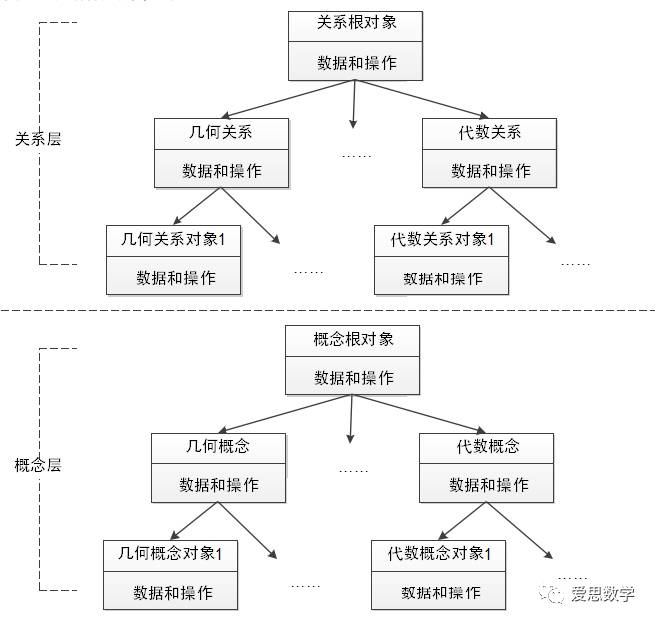 Data 与 Concepts 是由 Attributes 细化而来,一般来说,两者至少存在一个; 如点对象中存放表示点的数据,包括点的字母形式数据和坐标值数据;而线段由点构成,因此,线段对象包含两个点对象等。