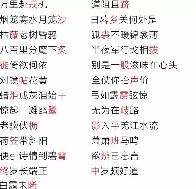 (6)半卷红旗临易水,霜重鼓寒声不起。(地名)