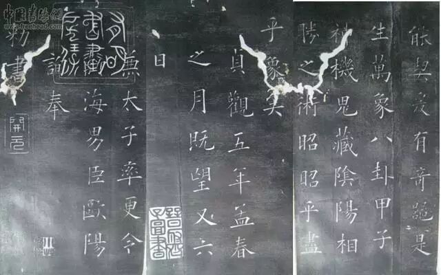 《阴符经》版本众多,文字差异较大,莫衷一是。这里特别介绍北宋郭忠恕三体书《黄帝阴符经》,由安祚勒字,于大宋干德四年(966)四月十三日刻于石碑,今存陕西省西安碑林。三体书为:大字篆书,小字古文、八分书。
