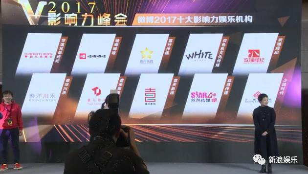 微博2017十大影响力娱乐机构:@华谊兄弟经纪 @哇唧唧哇 @嘉行传媒 @白色系文化传媒官博 @欢瑞世纪 @泰洋川禾 @童乐影视 @喜天影视 #上海丝芭文化传媒有限公司# @少城时代 。