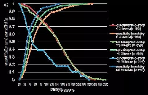 3. NIHSS 评分对预测大血管闭塞的准确性是否存在时间依赖性。
