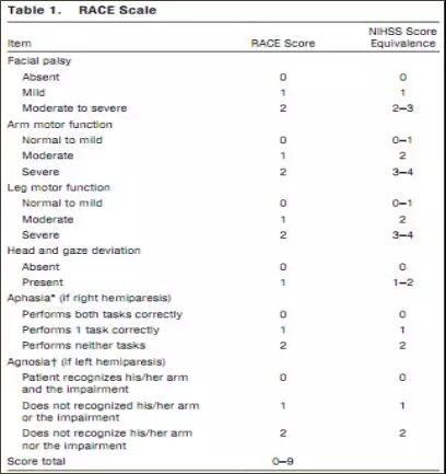 图 3 RACE 评分(Stroke. 2014;45:87-91)