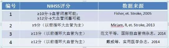 目前基本达成共识,即 NIHSS 评分对急性缺血性卒中大血管闭塞确有预测价值。