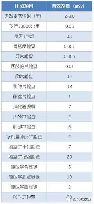把医院里各种影像检查的辐射强度估算值,与天然本底辐射对照看看,做检查的辐射危害强度一目了然。