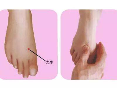 3分钟后换右手拇指指腹揉按左太冲穴3分钟。