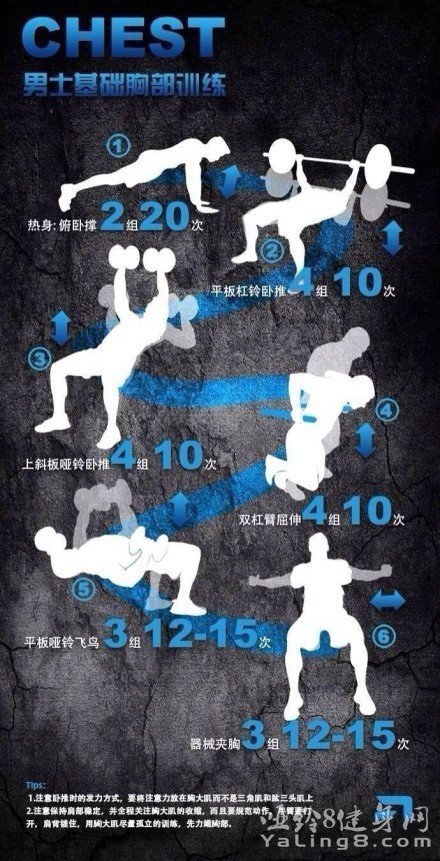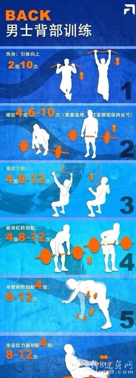 给大家推荐一个很实用的增肌计划,这个计划适合健身半年以上的人,对动作的准确性以及稳定性有一定的要求。以下6张图片分别介绍每一个部位的健身动作、顺序、组数和最大训练次数(RM),组间间隔60-90秒。