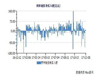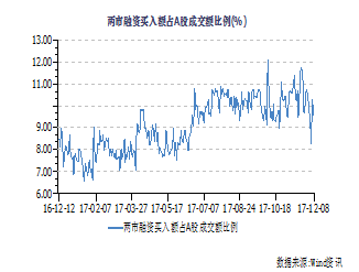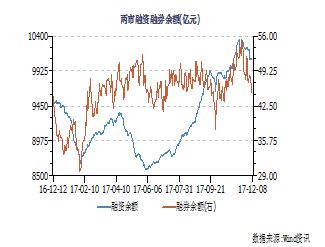 ▶融资融券市场概况:截至2017年12月8日,两市融资融券余额为10,137.71亿元,其中融资余额规模为10,092.04亿元,融券余额规模为45.67亿元。较此前(12月1日),融资余额减少1.25%,融券余额减少2.68%。12月4日-12月8日融资买入交易规模1889.13亿元,融券卖出股数5.00亿股。两市融资买入额占A股市场成交额比例5个交易日均值为9.48%。