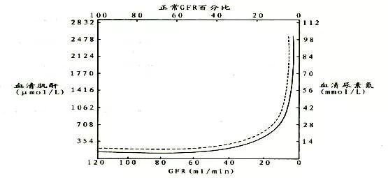(1)判断肾小球损害的敏感指标:当GFR低到正常值的50%,Ccr低到50ml/min,血肌酐仍可正常。