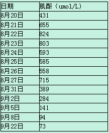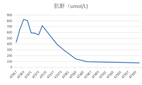 该患者,随即进行血液透析,动态肌酐变化如下: