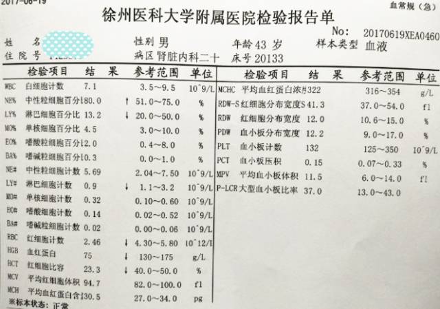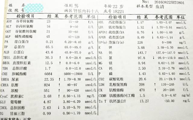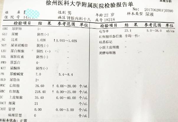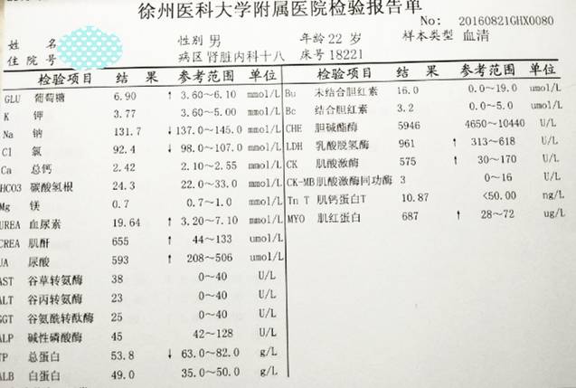 患者男,22岁,因“无尿1天”入院.实验室检查结果示: