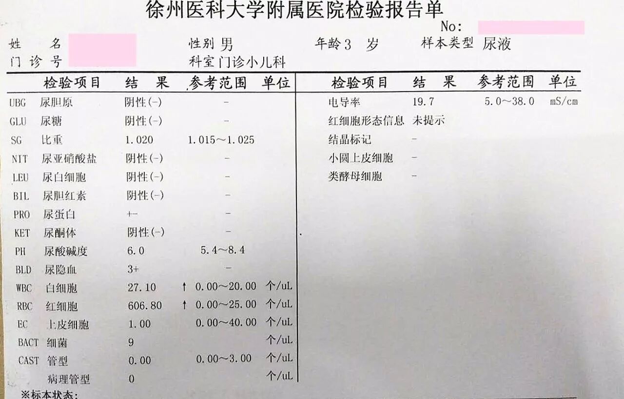 2. 尿常规示:尿隐血阳性,红细胞295.02个/ul;尿蛋白阳性(可阴性)。