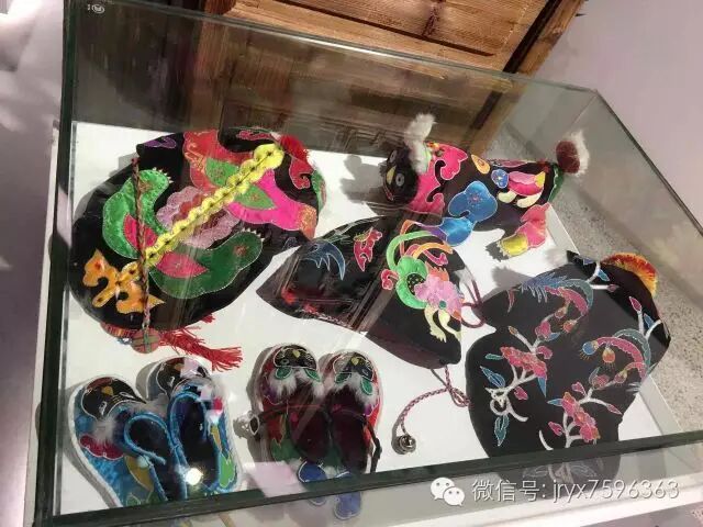 2、由于阳新布贴实物童装童玩的出现多伴随着母爱的寄托,故又形成了图案体系的吉祥性特征。3、阳新布贴实物底布多以黑色或深蓝色,贴花色彩多以原色和极色(白与黑),色彩效果如黑漆点金;其造型不求形似,常以装饰方法、寓意象征和心象造型;其组合构图常不拘时空,天上人间、山禽水族皆可集于一局,极度自由。纵观这些特点,充分体现出原始稚拙、浪漫遐想和强烈厚重的楚文化特征。4、阳新布贴以大块色布给人强烈的视觉冲击力,同时又兼溶刺绣工艺,形成了丰富的刺绣纹样来弥补大块贴布的不足,以及针线做工的“遇折回转”特点和绕边的细密性,从而又体现出做工的精致特征。