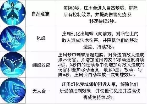 玩得好的庄周能通过一己之力改变战局~在打团时庄周的大招能化解一些较难反制的技能,如花木兰的壁咚,让己方迅速脱离控制!庄周搭配貂蝉、关羽、露娜等害怕控制的英雄,效果也非常好哟!