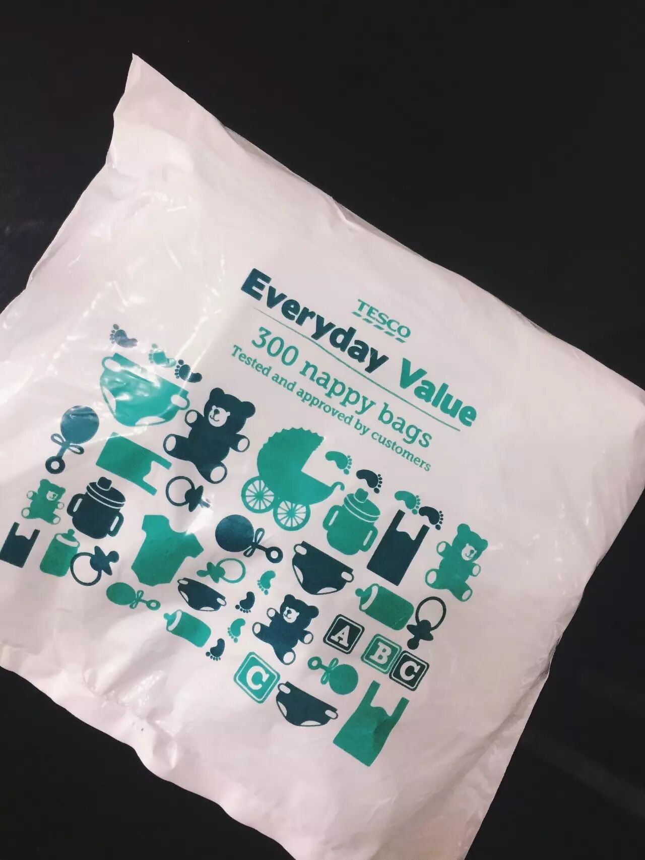 通常,我会在妈咪包的侧兜装若干个深色垃圾袋,便于在车上或者说没有垃圾桶的地方保存垃圾。但是因为垃圾袋比较大,而且不隔臭,所以我买了一次性尿片袋,这款尿片袋一个可以装一片用完的尿不湿,淡淡的香气可以有效地防止味道的散出,每次给阳换完以后,我都会装起来放进垃圾桶,这样也不至于给打扫的人带来困扰。