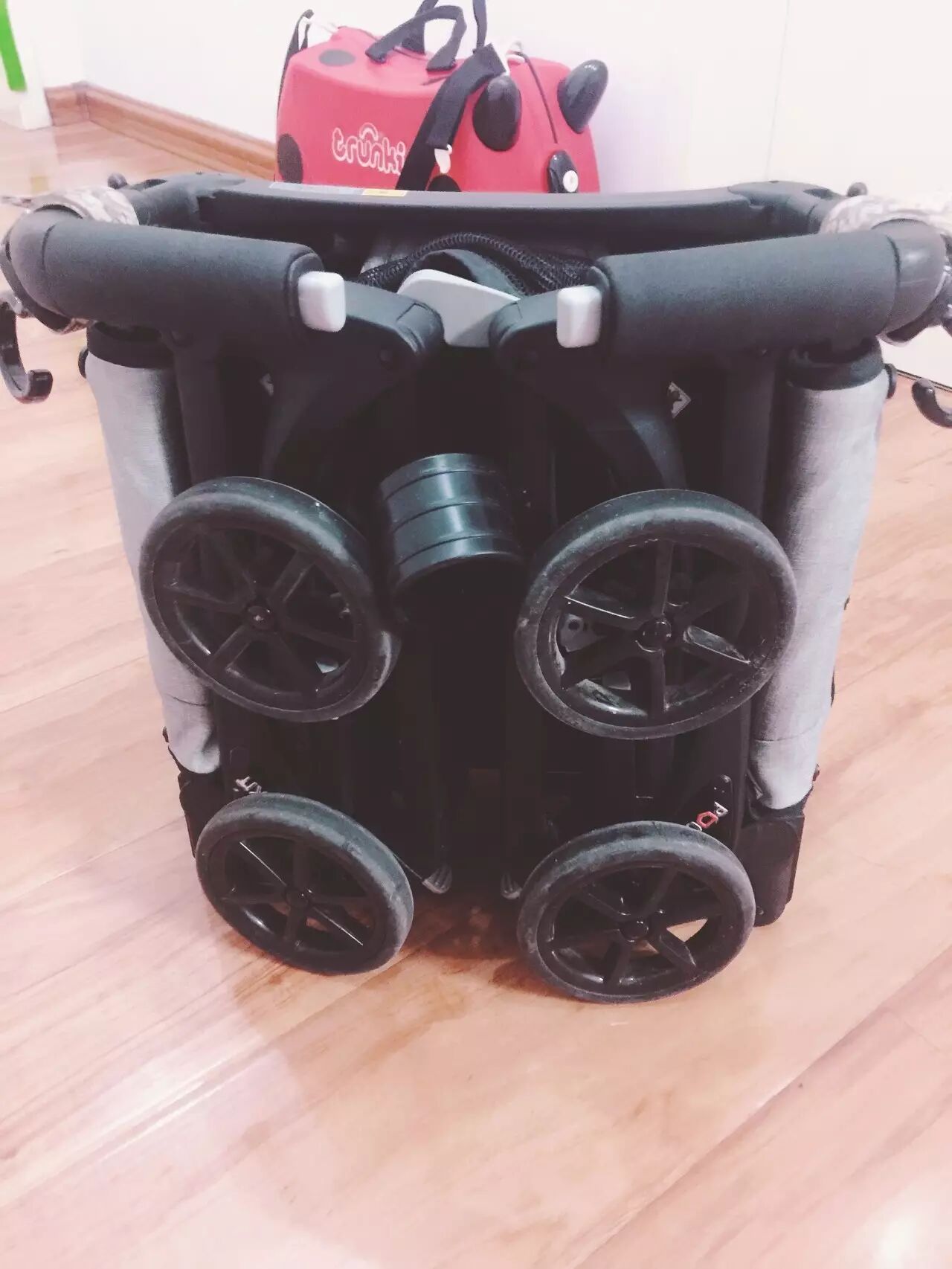 这款Geoby伞车是在日本购买的(当时因为带去的推车坏了),最初选择它,是因为考虑到我们出行频率高,换一辆口袋车携带方便,乘机也可带上行李架,而它又是店里唯一一款可以折叠成口袋的车。它的座位浅度适中(日系的推车座位普遍比较浅),拎着很轻,在平地上推还是很不错的,折叠起来装在包里(有配专门的袋子,很结实)可以直接背着,但是背久了肩膀还是有点酸的,它的不足之处是稳定性一般,而且上台阶的时候,手柄翘起来用不上劲。介意的朋友还是慎选。