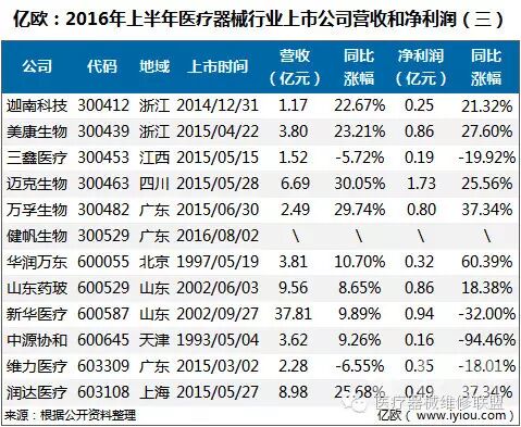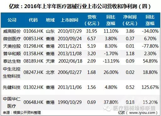 ②在2016年上半年中,43家医疗器械上市公司中,仅九安医疗呈现亏损状态,可以看出传统医疗器械公司向移动互联网转型,需要投入大量的研发成本与市场开拓成本,从侧面反映我国的移动医疗市场尚未成熟;