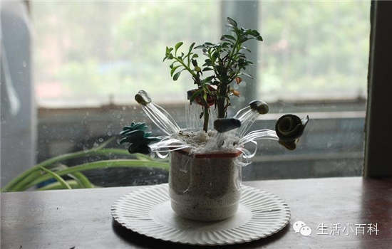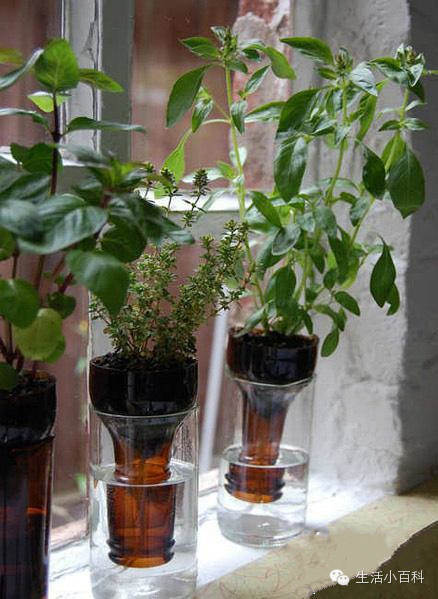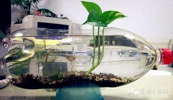 另一半装水。这样一来,花草能通过瓶口吸收水分,你只需要在出差之前把“花盘”的下半部分,加满水即可,就能保证1个月不用浇水啦。