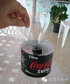 把一个可乐瓶剪成2半(瓶口三分之一、瓶底三分之二),瓶嘴朝下装进瓶底,把土壤放进有瓶口的里面,瓶口不需要完全拧紧能滴水即可(或者在瓶盖上钻2个小孔)。