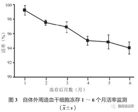 结论 自体外周造血干细胞采集冻存质量符合标准,为自体造血干细胞植活及移植的成功提供了根本保障。