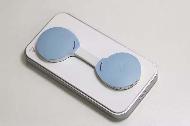 泰控心仪主要部件为单通道心电记录仪,它由两个电极片连接而成,体积非常小巧。通过蓝牙连接到智能手机,无需线缆,可以随时随地采集心电图数据。心电仪内置可充电电池。长方形的充电底座采用磁铁自吸即可为心电记录仪充电。