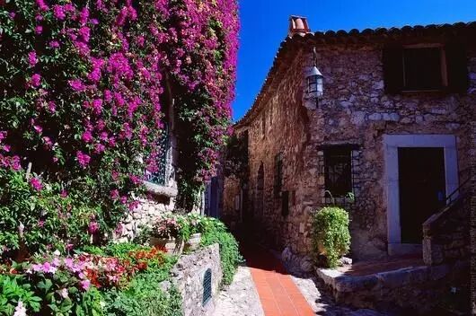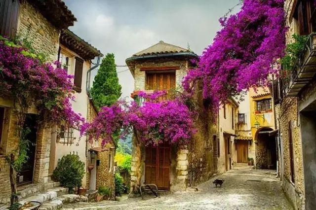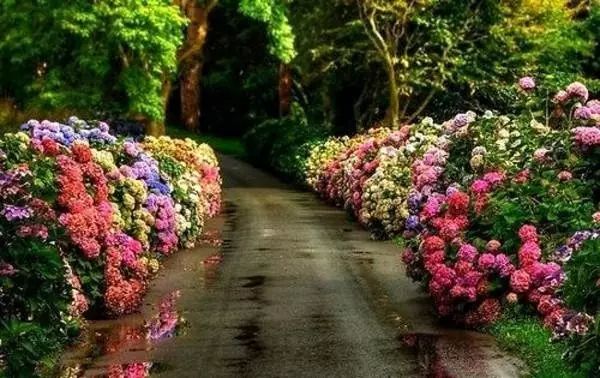 通往小镇的路旁满是鲜花