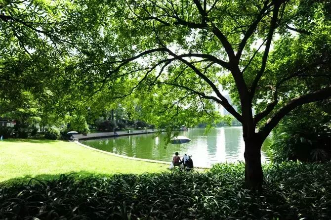 珠江公园的空间布局与我们去过的其他公园不同,它没有明显的空间轴线,他的园路以环形的空间序列来布局,以园路来连接各个景点。在原有地形上挖池堆山,园内有一“快绿湖”,它不是一片开阔的水域,追求自然的流畅的曲线型,湖边堆山,结合茂密的树林,给人的感觉非常的深远而幽静。