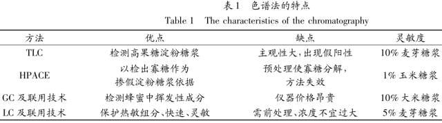 目前色谱法已广泛用于控制蜂蜜质量,在掺假鉴别中主要针对蜂蜜中的不同糖分、类黄酮、多酚、有机酸、挥发性物质、氨基酸、矿物质进行分离检测(各色谱的特点见表1)。 ![]()