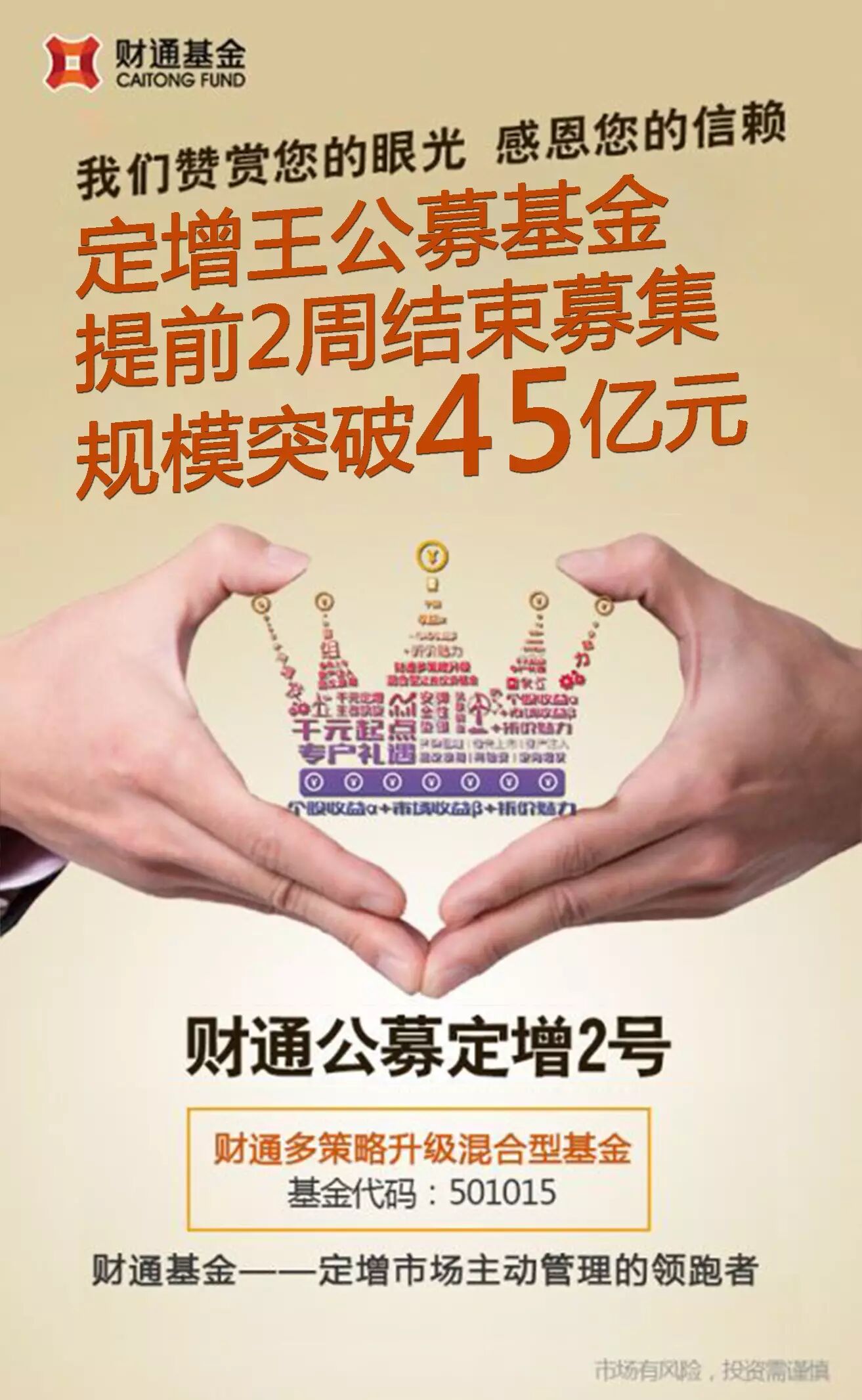 截至2016年2月29日,财通基金自2013年以来中标了330个定增项目,总规模达951亿元,超越二、三、四名的总和,蝉联行业“定增王”。公司率先设立投行部,与300余家上市公司及60多家投行密切合作,深挖一级半市场标的价值,积极拓展与上市公司上下游产业链的深入合作,全方位联动一二级市场。截至2月末,财通基金已解禁的158个定增项目平均收益率达71%。公司至今已成功发行900余只定增产品,满足22000余名高净值客户与400余家专业机构的多元化定制需求,凭借1000亿元的定增投资实务经验,财通基金铸就定增市场最大的主动管理机构。
