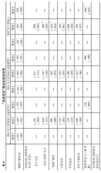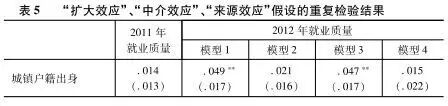 假设2b:城镇户籍出身者与农村户籍出身者相比,初期工作发生过度教育的可能性更低,并且这种差异部分解释了两者后来的工作收入(就业质量)差异。