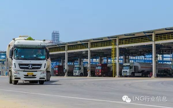 一辆辆LNG重卡在山东LNG接收站排队充装。