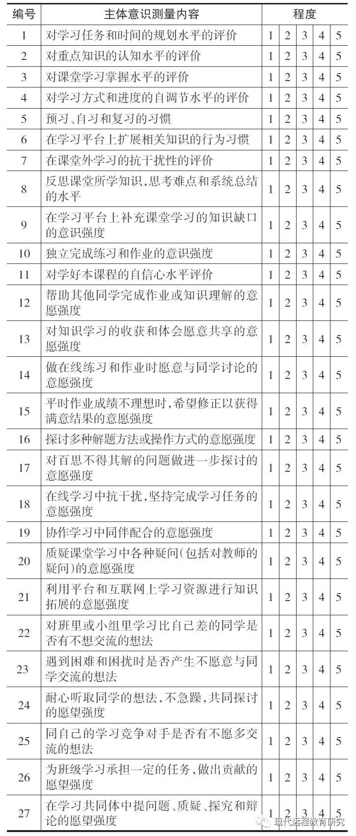 混合式学习不再由教师完全控制学习进程和活动内容,在线上学习活动中学习处于弱控制状态(衷克定,2011)。主体的意识、行为和观念将很大程度上能动地支配其主观取向。