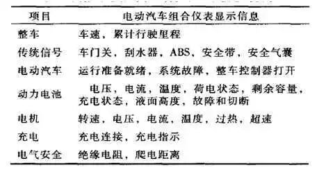 电动汽车仪表盘,结合传统车原来的布置,国标GB/T 19836-2005 对显示内容提出了要求,如下表所示。