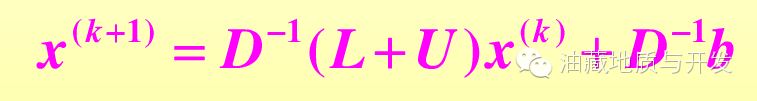 如果将(D-L-U)x=b改写为Dx=(L+U)x+b,据此建立迭代格式即为Jacobi迭代格式: