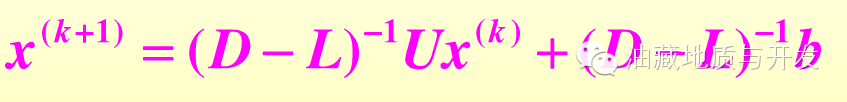 如果将方程Ax=(D-L-U)x=b改写为Dx=Lx+Ux+b,据此建立迭代格式,则Gauss-Seidel迭代格式为:
