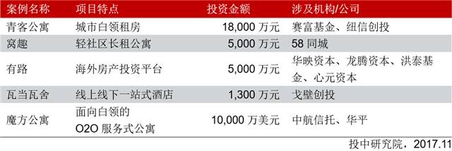 住宿方面,根据投中信息数据终端CVSource数据显示,项目融资主要集中在酒店、民宿、社区、定制家居与金融等方面,其中酒店及民宿涉及的案例与金额占比较高。由于多数住宿类项目具有重资产的特质,并且平台类项目前期推广与补贴费用较高,因此此前融资额持续处于上升状态。住宿类项目在2017年迎来投融资低潮期,这与投资机构/公司转向住宿管理类项目相关,该类项目融资金额普遍较低。例如,中航信托、华平投资的魔方公寓与赛富基金、纽信创投投资的青客公寓,均是为都市白领打造的品质社区。