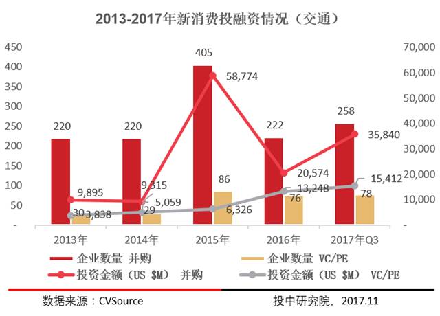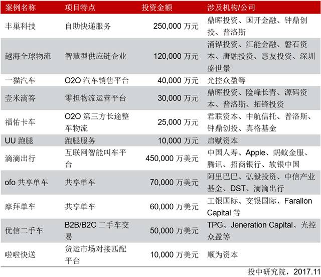 出行方面,根据投中信息数据终端CVSource数据显示,项目融资主要集中在供应链与消费者出行两个方面,多数项目为节约时间、提升效率服务。交通对供应链的贡献主要在于物流效率的提升,这其中不仅涉及物流网络搭建、运力利用与匹配,而且涉及配送的时效性与灵活性;交通对消费者个人出行的贡献则在于提升出行便捷性、解决最后一公里问题以及汽车消费等。无论是VC/PE还是并购交易,对交通类项目的年投资额总体处于上升趋势。随着新消费继续深入发展,交通作为渠道建设中的重要一环将继续吸引资本进入。例如,鼎晖投资等机构投资的丰巢科技以自助箱解决配送最后一公里问题;中国人寿等投资的滴滴出行则提供给消费者便利的用车选择;光控众盈等投资的优信二手车则使二手车交易透明化,效率更高。