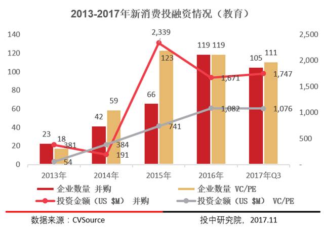 教育方面,根据投中信息数据终端CVSource数据显示,项目融资呈现逐年递增趋势,并且项目覆盖从婴幼儿至成年人的所有学习过程。国内公办学校资源稀缺、民办学校质量偏低使得教育及培训机构拥有广阔发展空间;并且,在消费者追求自我价值实现时,感性内容与知性内容的相对匮乏都为知识付费提供了极大的生存土壤。例如,今日资本等投资的知乎提供了专业知识与经验的传播平台,其与腾讯、红杉中国等投资的得到共同成为知识付费的重要渠道。