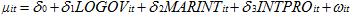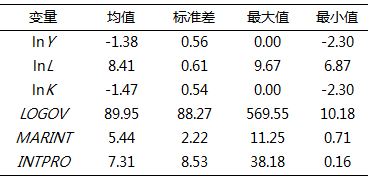 式中,LOGOVit为i省区t年度地方政府对当地产学合作的支持,用地方政府财政支出中科学技术支出度量;MARINTit是i省区t年度市场中介组织的发育水平,用《中国分省份市场化指数报告(2016)》中“市场中介组织的发育”指数度量;INTPROit是i省区t年度知识产权保护水平,用《中国分省份市场化指数报告(2016)》中“知识产权保护”指数度量。δ0为待估常数项;δ1、δ2、δ3分别为相关外生变量对技术无效率项的影响系数,若系数为负,说明外生变量对技术效率有正向影响,反之,则有负向影响;ωit为随机误差项。