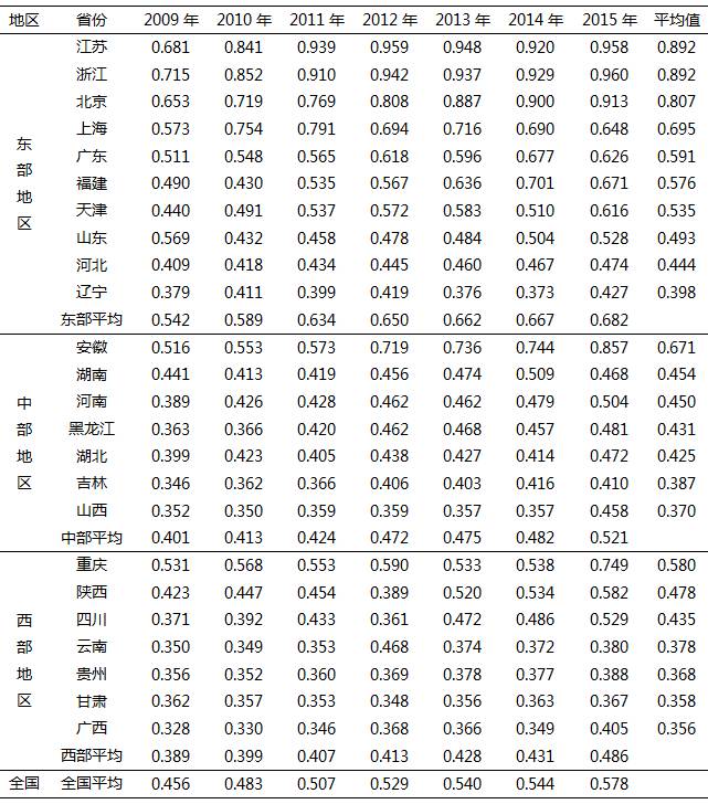 注:东、中、西部地区划分标准参考陈立泰等的研究成果
