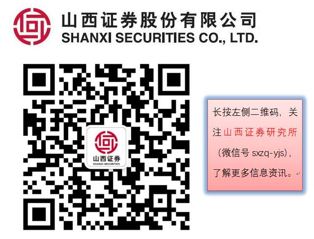 山西证券股份有限公司(以下简称“本公司”)具备证券投资咨询业务资格。本报告是基于本公司认为可靠的已公开信息,但本公司不保证该等信息的准确性或完整性。入市有风险,投资需谨慎。在任何情况下,本报告中的信息或所表述的意见并不构成对任何人的投资建议。在任何情况下,本公司不对任何人因使用本报告中的任何内容所引致的任何损失负任何责任。本报告所载的资料、意见及推测仅反映本所于发布本报告当日的判断。在不同时期,本所可发出与本报告所载资料、意见及推测不一致的报告。本公司或其关联机构在法律许可的情况下可能持有或交易本报告中提到的上市公司所发行的证券或投资标的,还可能为或争取为这些公司提供投资银行或财务顾问服务。客户应当考虑到本公司可能存在可能影响本报告客观性的利益冲突。本公司在知晓范围内履行披露义务。本报告的版权归本公司所有。本公司对本报告保留一切权利。未经本公司事先书面授权,本报告的任何部分均不得以任何方式制作任何形式的拷贝、复印件或复制品,或再次分发给任何其他人,或以任何侵犯本公司版权的其他方式使用。否则,本公司将保留随时追究其法律责任的权利。