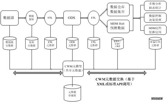 图 6. 基于 CWM 模型驱动的点对点元数据集成体系结构